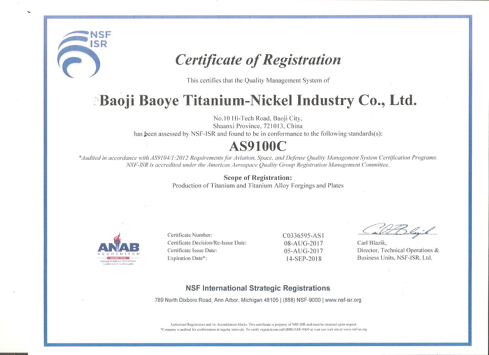 Congratulate precious baoji titanium nickel AS9100C smelting made